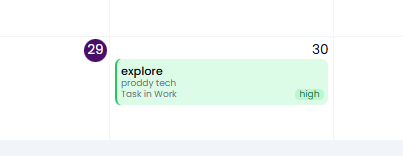 Tasks with due dates automatically appear on the Calendar. Each task shows:- Task title